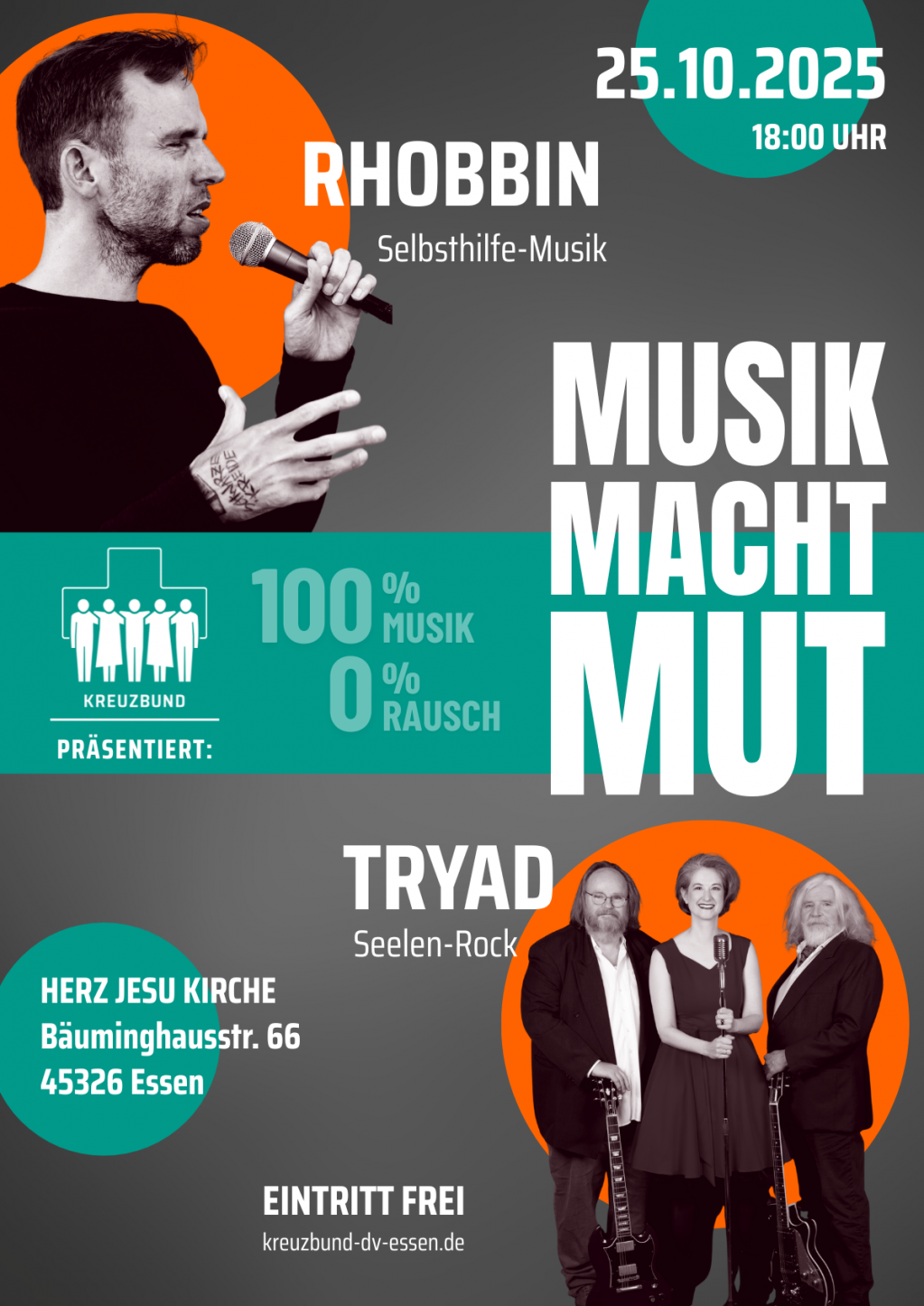• Gesprächsrunde des Musikers „RHOBBIN“ mit unserem Geistlichen Beirat, Ingo Mattauch, über die persönlichen Erfahrungen des Musikers zu seinen Wegen aus der Sucht und die Verbindung zu seinem Glauben. Das Gespräch findet ab 16:00 Uhr statt.